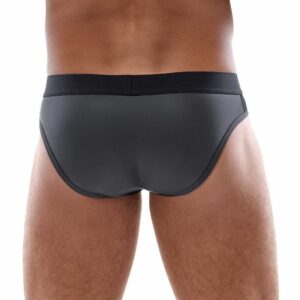 Slip von Svenjoyment mit gepolstertem Beutel für eine markante Frontwölbung. Edler schwarzer Mattlook mit Netz-Einsätzen vorne. Rundum weich und elastisch und mit breitem Webgummibund für höchsten Tragekomfort.