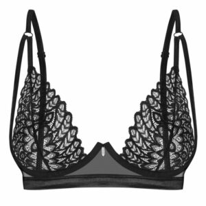 Schwarzer Bügel-BH Donarella von Obsessive aus feinem besticktem Stretchtüll. Die weichen elastischen Cups schmiegen sich komfortabel formend an. Als Eyecatcher ein kleines Schmuckelement zwischen den Cups. Der Hakenverschluss im Rücken und die Träger sind passend verstellbar.
