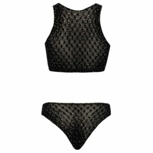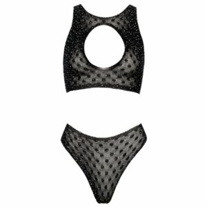 Top und Slip im Set von Cottelli FANTASY aus feinem weichem, semi-transparentem Stretchmaterial – über und über mit verschieden großen Strass-Steinchen besetzt. Top mit schönem Cut-out im Dekolleté. Alles nahtlos ohne prägnante Säume gefertigt und elastisch anschmiegsam für hohen Tragekomfort.