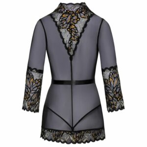 Kurzer pobedeckender Kimono von kissable aus feinem Powernet im Mix mit edler Effektspitze. Rundum weich und elastisch für höchsten Tragekomfort. Mit 3/4-Arm und Satin-Bindegürtel.