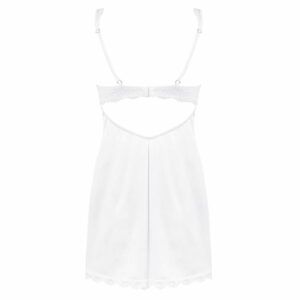 Tailliertes Dessouskleid und String im Set Amor Blanco von Obsessive. Oberteil komplett aus Spitze und mit Cup-Bügeln gearbeitet, der Saum ist ebenfalls mit feiner Spitze verziert. Rundum weich und elastisch für höchsten Tragekomfort. Im Rücken mit Hakenverschluss. Die Träger aus Spitze sind passend verstellbar. Der schlichte schöne String komplettiert diesen verführerischen Look.
