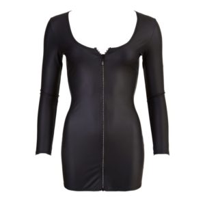 Das schwarze Minikleid mit langem Arm begeistert mit seinem engen Schnitt, der Ihre weiblichen Rundungen formschön und aufregend betont, sowie mit großem Ausschnitt und funkelndem Glitzer-Reißverschluss vorne. Nicht nur Sie werden begeistert sein!