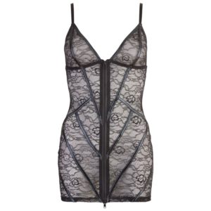 Dieses schwarze Kleid aus feiner Blumenspitze mit rockigen Wetlook-Streifen in der Front ist gar nicht so unschuldig, wie es auf den ersten Blick wirkt, denn mit nur einem Zug vorn am durchgehenden Zwei-Wege-Reißverschluss enthüllt es alles, was darunter liegt… Träger verstellbar. 90% Polyamid, 10% Elasthan.