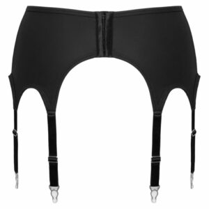 11 cm hoher Strapsgurt von Cottelli LINGERIE komplett im edlen schwarzen Mattlook mit silberfarbenen Metalldetails. Weich und elastisch für hohen Tragekomfort. Insgesamt 8 verstellbare Strumpfhalter. Im Rücken mit Hakenverschluss.