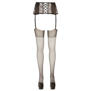 Straps-Strümpfe mit vorgeformten Fuß. Aus seidig glänzendem Material mit schlichtem Abschluss.