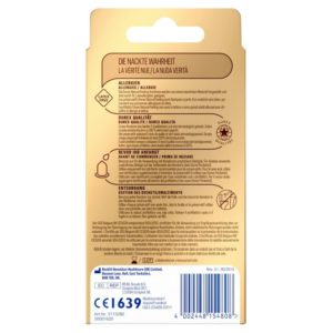 Transparente Kondome aus Real Feel Material für ein natürliches Haut an Haut Gefühl. Latexfrei und dermatologisch getestet. Die Easy-on Passform sorgt für einen besseren Sitz und ein leichteres Abrollen. Mit Reservoir und Feuchtbeschichtung.