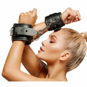 Stabile Leder-Handfessel von ZADO inklusive 2 Schlösser mit Schlüsseln. Leder-Fesselmanschetten hochwertig gearbeitet mit abgesteppten Kanten. Dazu dick und weich gepolstert für hohen Tragekomfort. Jeweils mit Schnallenverschluss passend verstellbar und mit beiliegenden Schlössern arretierbar. Der starke Doppelkarabiner ist als Verbindung in die robusten Ringe der Manschetten schnell eingehakt.
