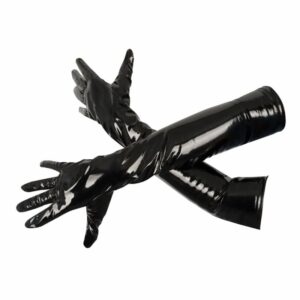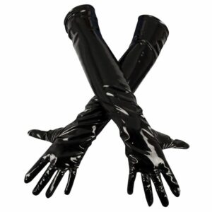 Lange Handschuhe von Black Level im schwarzen Lackglanz. Mit Stretch-Einsätzen für perfekten, hautnahen und dennoch bequemen Sitz.