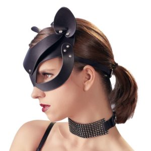 Formstabile Kopfmaske aus Lederimitat mit sinnlichen Katzenohren und kleinen Strass-Nieten. Mit Druckknöpfen und Schnallenverschluss hinten für eine optimale Passform. Ideal für aufregende Rollenspiele.