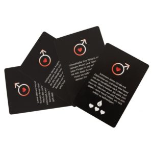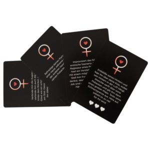 Das aufregende Pärchenspiel mit 90 innovativen erotischen Ideen, sexy Anregungen und abenteuerlichen Aktivitäten. Bei diesem raffinierten Spiel ist das Mitmachen genauso aufregend und stimulierend wie das Gewinnen! Inhalt: 90 Aufgabenkarten plus 8 Sonderkarten sowie 2 Joker, 1 Würfel, 1 Sanduhr. Deutsche Version.