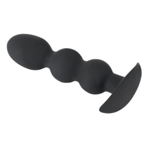 Ideal für anale Dehnspiele: Kugelplug mit breitem, sicherem Ankerfuß. Gesamtlänge 13,3 cm, Ø 1,7 bis 3,2 cm. Schwarz. Silikon mit PU-Beschichtung (Soft Touch).
