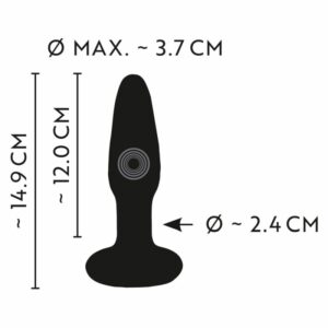 Gesamtlänge 14,9 cm, Einführlänge 12 cm; Ø max. 3,7 cm, Verjüngung-Ø 2,4 cm.