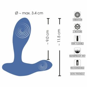 2 Motoren sorgen für zuverlässige Power – einer im Plug und einer im Perineum-Stimulator. So sind die 10 leisen Vibrationsmodi innen und außen intensiv spürbar. Einfach per Knopfdruck unten am Toy sind die Modi bequem steuerbar. Auch in Bad und Dusche, denn der schicke Analvibrator ist wasserdicht.