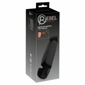Handlicher Masturbator Penis Trainer with 3 Point Stimulation von Rebel mit flexiblen Flügeln, die den Penisschaft fest umschließen und Eichel sowie Hoden in flexiblen Segmenten sanft einbetten. So kann der Masturbator auch bei Erektionsstörungen verwendet werden. Im Eichel-Segment massieren und verwöhnen softe Noppen, im Mittel-Segment ausgeprägte Reizrillen und im Hoden-Segment festere Noppen. 3 Motoren – in jedem Segment einer – sorgen für grandiose Stimulation mit jeweils 10 Vibrationsmodi, die separat per Knopfdruck direkt am Toy bequem steuerbar sind. Das hochwertige Silikonmaterial sorgt beim Masturbieren für ein sehr angenehmes Hautgefühl. Wiederaufladbar – inkl. USB-Ladekabel.