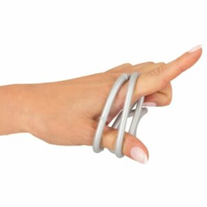 Sehr dehnbarer Metallic Silicone Triple cock and ball ring von You2Toys in cooler Metall-Optik – aber mit dem Tragekomfort von seidig softem Silikon. Die 3 miteinander kombinierten Silikonringe passen sich Penis und Hoden optimal an, tragen sich angenehm fest und unterstützen dank Blutstau-Effekt lang anhaltend die Erektion. Hoch flexibel sind mehrere Tragevarianten möglich.
