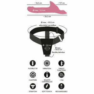 Puristisch stilvolles Set von Your Strap-on Collection by You2Toys mit Harness, 2-Motor-Stoßvibrator und Fernbedienung. Für tiefgehende automatische Stoßvergnügen, während die Trägerin selbst mit Vibrationen an Vulva und Klitoris verwöhnt wird. Der modische Umschnallstring lässt sich auf perfekte Passform und festen bequemen Sitz verstellen. Strap-on-Spaß mit Style und vollem Komfort!