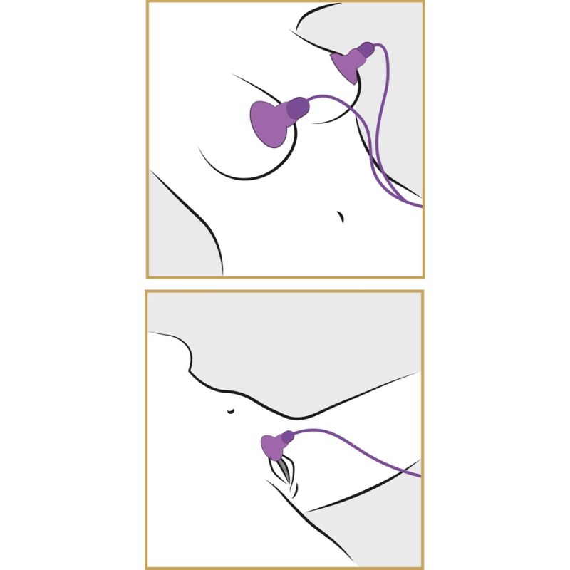 Diese Nippel- und Klitoris-Stimulatoren begeistern mit erregender Vibration. Die weichen Hütchen saugen sich sanft an den Brüsten fest. Um die Noppen auf dem Intimbereich zur Klitoris-Stimulation zu verwenden, wird der Rand einfach umgestülpt. Stufenlose Steuerung der Vibration mit On-/Off-Rädchen. Batterien bitte extra bestellen: 3 x AA.