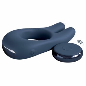 Wasserdichter Vibro-Penisring Deimos von JimmyJane mit 2 Klitoris-Stimulatoren. In jedem Stimulator steckt ein kleiner leistungsstarker Motor. 10 Vibrationsmodi bequem per Fernbedienung sorgen für aufregende Zusatz-Stimulationen beim Sex. Der stramme Sitz des Ringes unterstützt dank Blutstau-Effekt zusätzlich die Erektion. Das seidige Silikon-Toy ist beim Solo oder dem Spiel zu zweit auch als Auflegevibrator verwendbar.