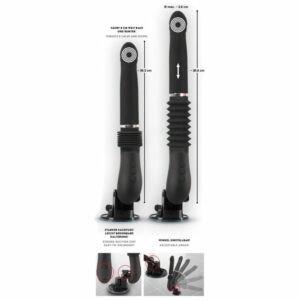 Gesamtlänge 30,3 cm bis 36,8 cm. Einführlänge 15 cm, Ø 3,1 cm bis 3,6 cm. Gewicht 323 g.
