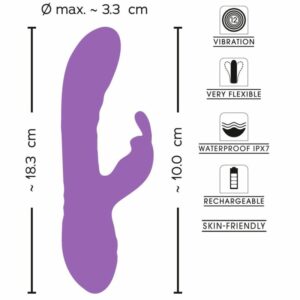 Handlicher Vibrator Flexible Rabbit von Sweet Smile in edler mattschimmernder Metallic-Glossy-Optik. Perfekte Dual-Stimulation: Massiert innen intensiv die Vagina/G-Zone und verwöhnt dabei gleichzeitig außen mit dem Vibro-Bunny die Klitoris. Beide stimulierend strukturierten Arme sind beweglich und flexibel. Für optimale Anpassung an Spiel, Körper und Bewegungen. Aus seidig softem Silikon gefertigt für leichtes Einführen und höchsten Verwöhnkomfort.